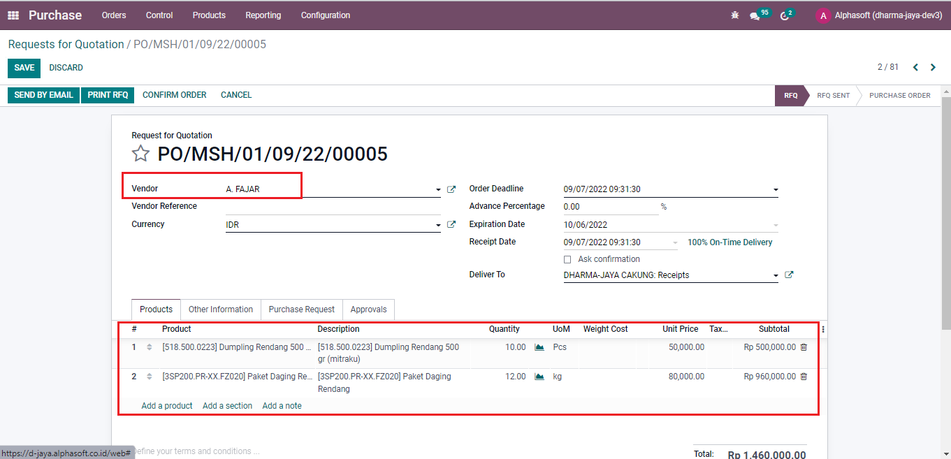 Masuk ke modul purchase ~> Klik create untuk membuat purchase order